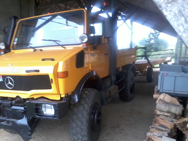 J'ai hésité à acheter un apiranger et finalement j'ai trouvé un élévateur 4x4 qui passe sur le plateau de l'unimog après réduction de la hauteur du mat...