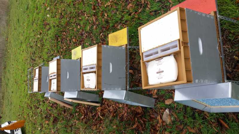 Les caisses sont prêtes, candi, isolant et sangles posés, la grappe a du se mettre en place, place au repos des colonies.