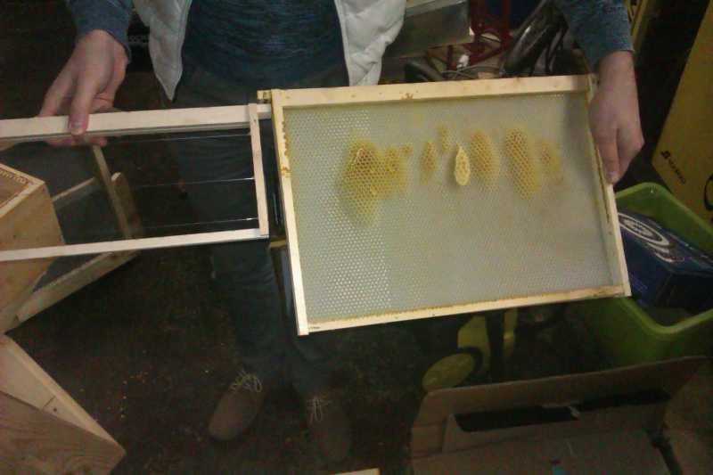 En sortie de chaudière, les cadres sont grattés, encore chaud, avec un "couteau" maison, issue d'une lame de scie industrielle.