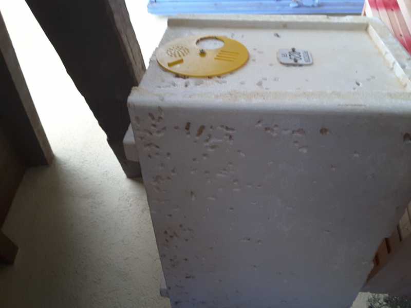 J'ai déjà quelques ruchettes polystyrène depuis un an. Je dois racheter des nouvelles ruchettes. J'hésite entre des polystyrènes ou des bois. Je suis convaincu du confort thermique pour les abeilles, mais je me pose des questions sur leur durabilité. Combien de temps durent les tiennes ? Y a t'il des apis qui ont eu des problèmes avec les pics-verts ? J'ai constaté un truc embêtant, c'est que les ruchettes poly. que j'ai (des quarti aussi je crois, achetées chez Icko) sont plus larges que les toits tôles 6 cadres Dadant. Avec un nourrisseur bois, le toît rentre, mais pas sans. Existe-t-il des toits plus larges ou bien une autre marque de ruchettes poly. qui fasse la même largeur que les ruchettes bois ?