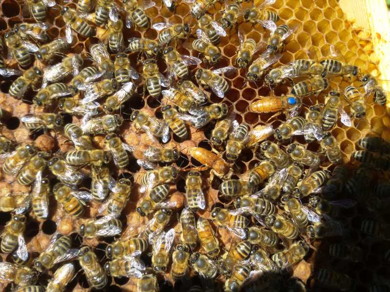 J'étais en effet en plein dedans à 30,5 cm entre le capteur du boitier et le sujet, à peine quelques centimètres entre le sujet et l'objectif, pas tranquille au milieu de quelques centaines d'abeilles qui des fois se posaient sur moi ou sur le boitier :pinch: