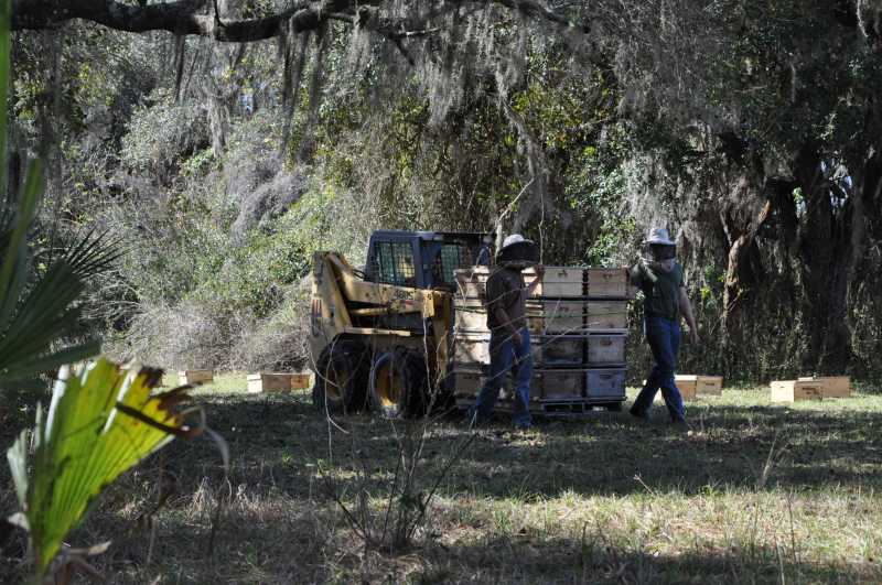Maintenant, sans travail de sélection, sur une palette de deux, c'est une ruche avec trois hausses et l'autre sans.