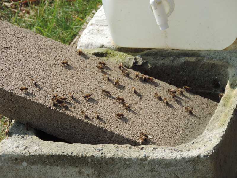 J'ai trouvé la solution par hasard, mettre une hausse à piller à coté et alors certaines abeilles vont "voir" l'abreuvoir et commencer à s'en servir.