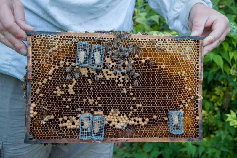 Je compte les introduire immédiatement après le prélèvement des cadres de couvain, afin d'éviter que les abeilles ne déclenchent le processus d'élevage, dans une cagette classique, comme pour une reine fécondée.