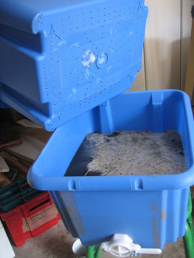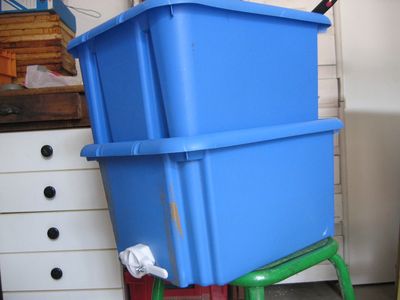 Pas besoin d'investir dans un extracteur, bac à désoperculer et maturateurs. Ce système va bien pour une petite récolte de 50 à 80 kg. Pour davantage, il faudrait prévoir de multiplier le nombre de bacs.