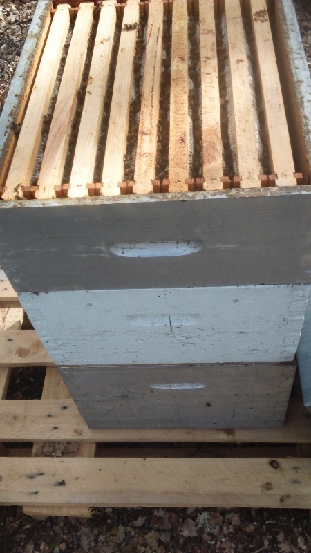 J'ai commencé le printemps avec des colonies sur une caisse langstroth puis j'ai ajouté une seconde caisse langstroth puis une troisième. Je n'ai pas mis de grille à reine