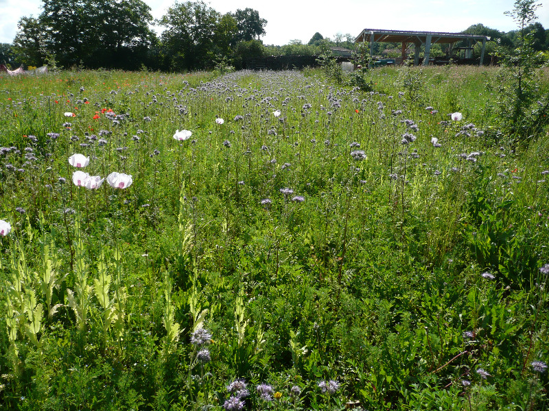 La phacélie couvre tellement bien le sol que sa fait crever le lisseron; seules les graminées arrivent difficilement a s'en sortir.