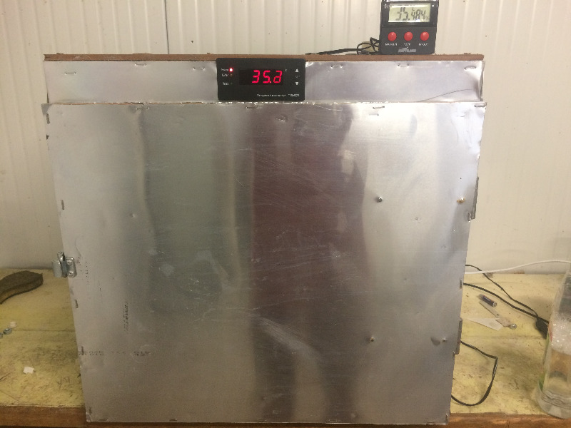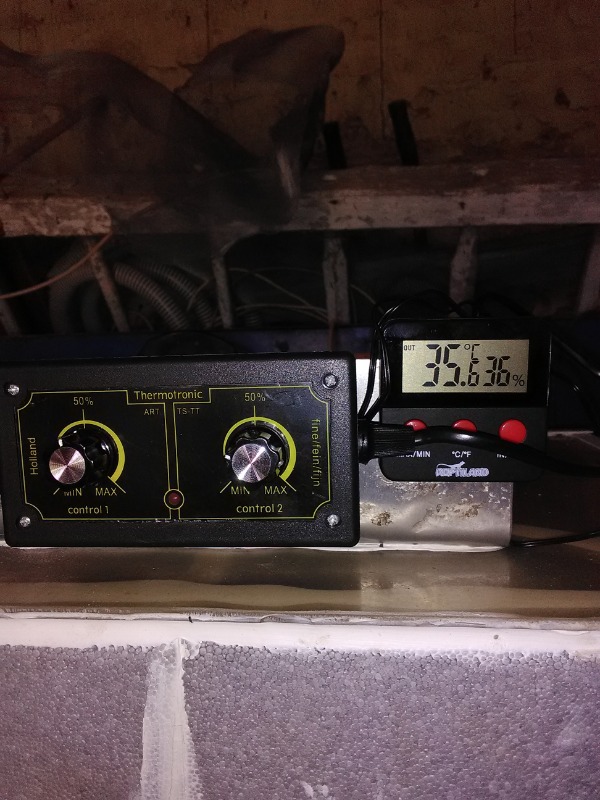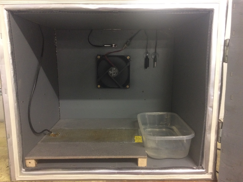 Pour plus d'inertie, j'ai installé le film chauffant sur une plaque de carrelage. Pour assurer l'humidité un tupperware à côté suffit à monter à 88%, je n'arrive pas à plus, est ce bien nécessaire de toute facon?