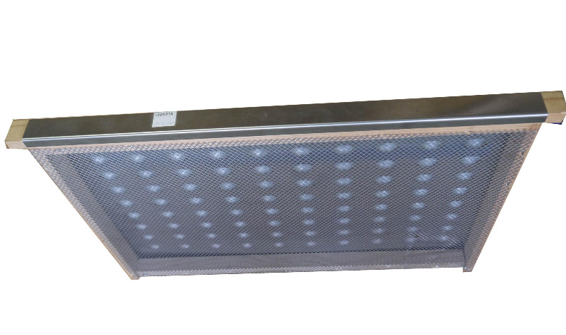 On place les grilles à propolis au dessus du corps de ruche dés la fin de la saison de miel, soit mi-juillet. La grille est tout simplement placée sous le couvre-cadres, après avoir enlevé les dernières hausses de miel.