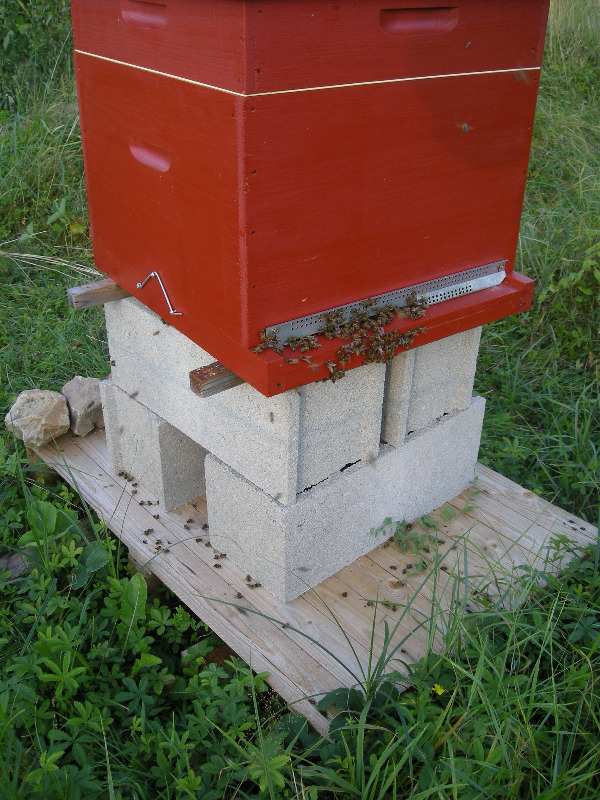 Fin mot de l'histoire: je me trouve maintenant dans la situation que j'ai obstrué l'entrée et la sortie à mes abeilles, alors qu'elles veulent voler, et que je ne suis pas sûr si cette réaction était la bonne ou exactement le contraire. Ai-je fait du bien ou du mal à mes abeilles, cela c'est la question! Et quoi faire maintenant?