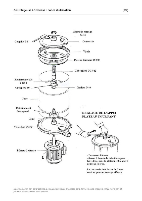 j'ai un soucis avec ma centrifugeuse, 1 vitesse, de chez Tho..... apiculture, l'axe d'entrainement du bas du panier se met de travers et bloque la machine. Je ne vois pas de roulement d'indiqué sur le schémas au niveau de l'entrainement hexagonal, c'est étonnant quelqu'un a t'il déjà tout démonté ? merci