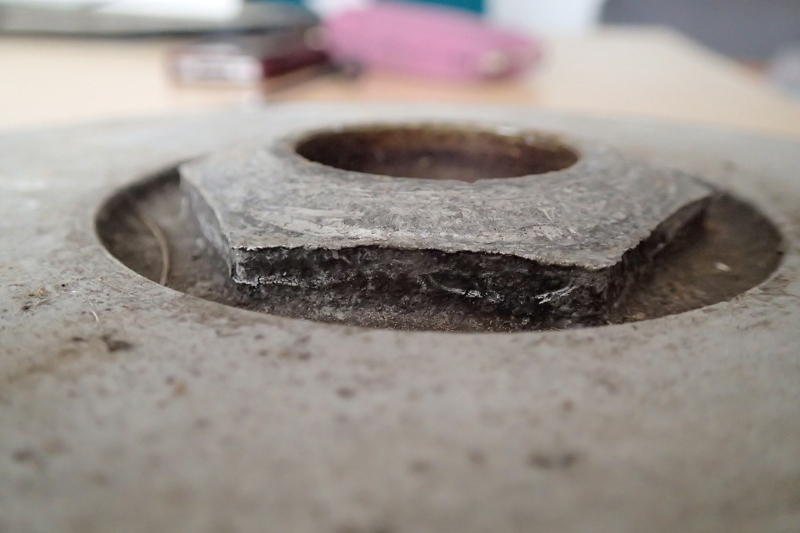 Ensuite, ce qui t'arrive, c'est la maladie des ETF 45. En vibrant, le panier en inox use l'hexagone en alu.