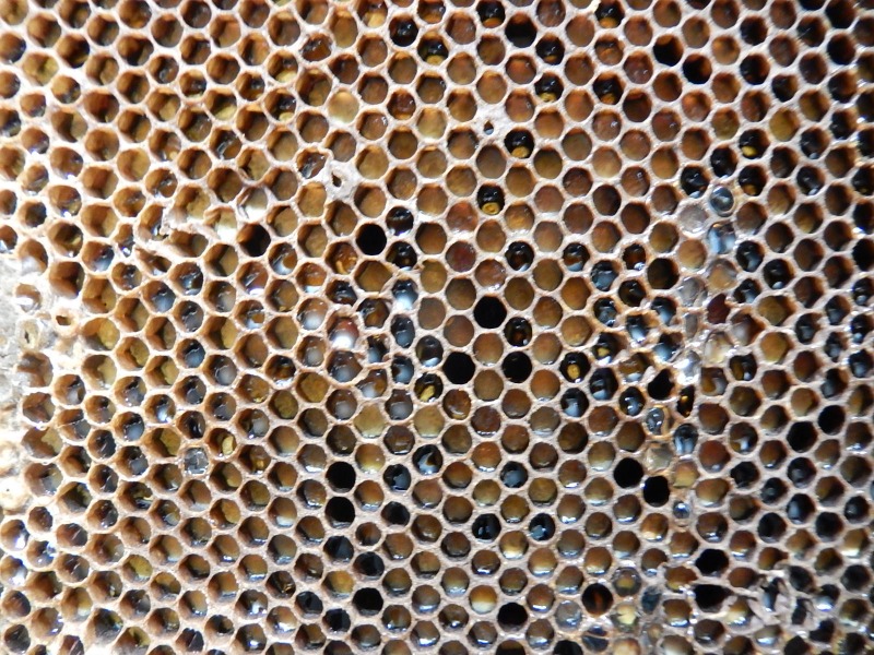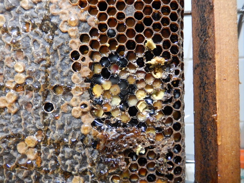 OK pour le cadre, ça confirme ce que nous avons fait, je me pose juste la question pourquoi beaucoup de cellules étaient emplies de cire et que quelques autres contenaient des pupes.