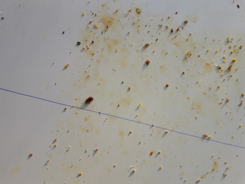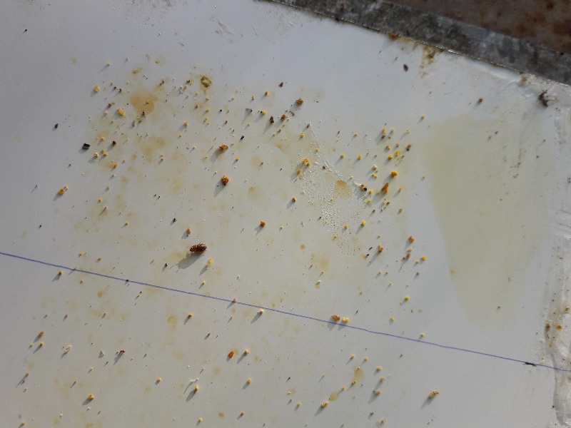 Les larves se nourrissent en hiver de pain d'abeille, j'ai élevé ces larves pour les identifier et découvrir les adultes qui naissent fin mars, on peut en trouver plusieurs centaines par cadre. Ils sont inoffensifs et je pense que toutes les ruches sont habitées par ces coléoptères. Les larves sont si petites et si lentes que seuls quelques apiculteurs les remarquent. Les acaricides Apivar ou Apistan sont sans effet sur eux.