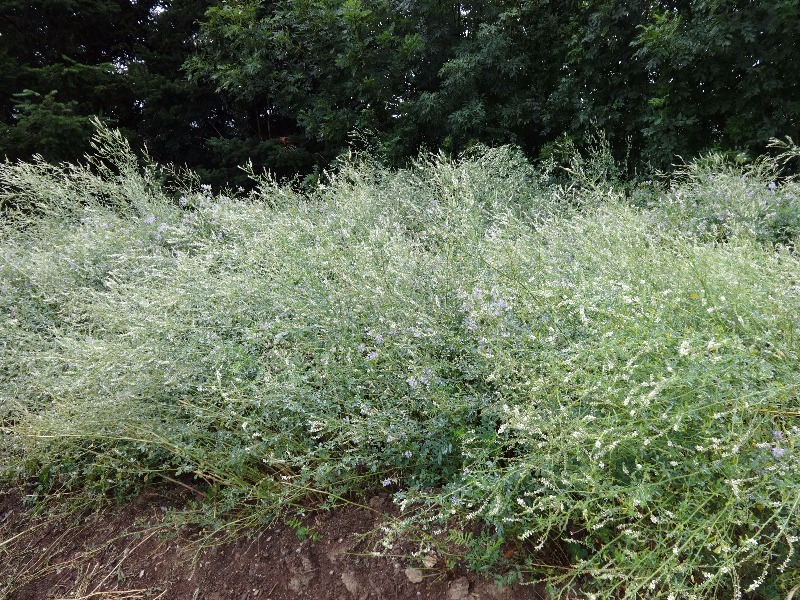 Le mélilot blanc, un massif de 50 mètres dans une zone industrielle. Si elles arrivent à le trouver, c'est à 2 km des ruches. Par contre il est mélangé avec du "galéga" (sainfoin d'Espagne), plante toxique pour le bétail (400gr de plante sèche tue un mouton) :