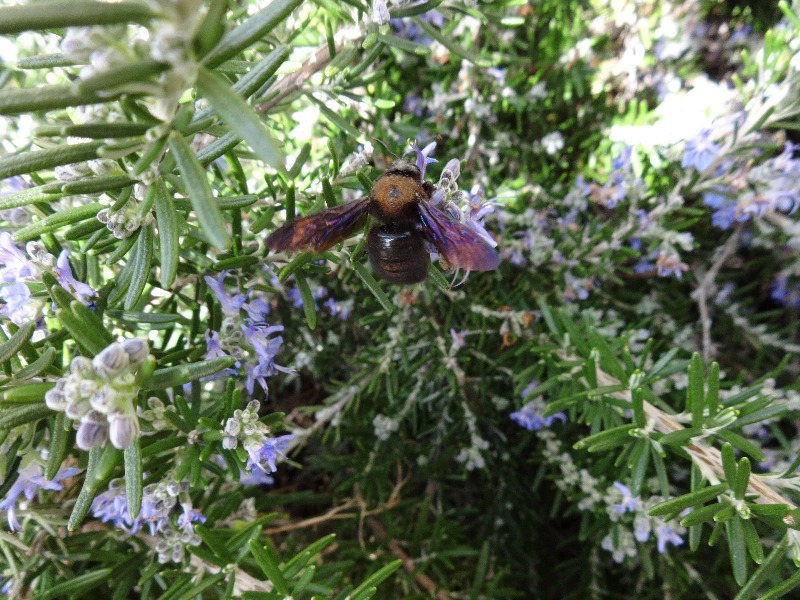 Aujourd'hui, je regarde les charpentières sur la glycine devant la porte