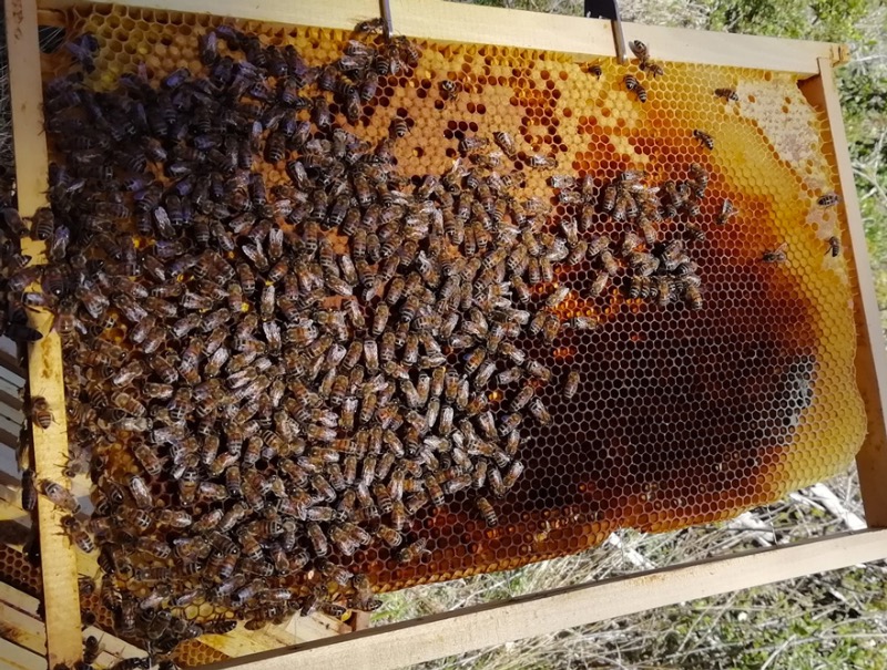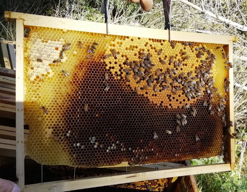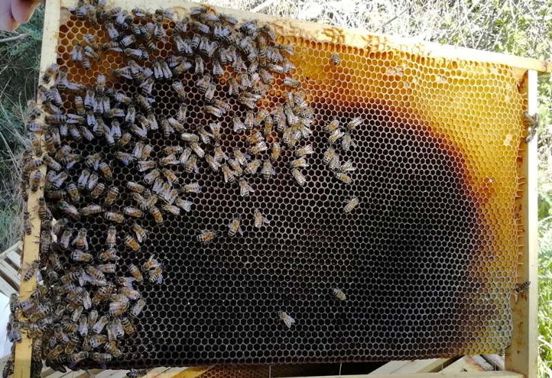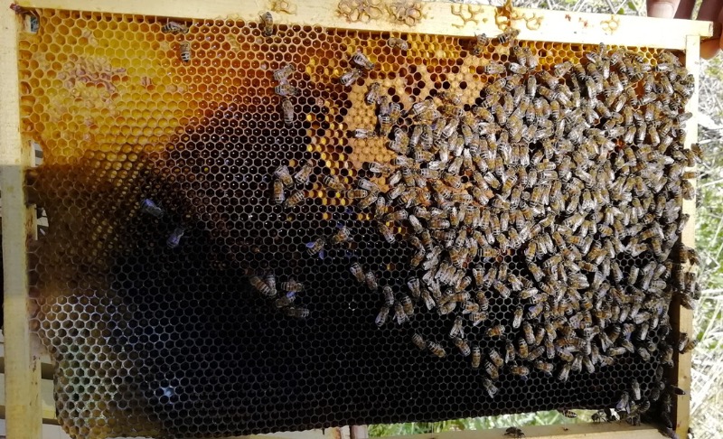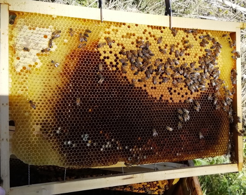 Je ne vois toujours pas de couvain ouvert, il n'y a pas beaucoup de couvain operculé.