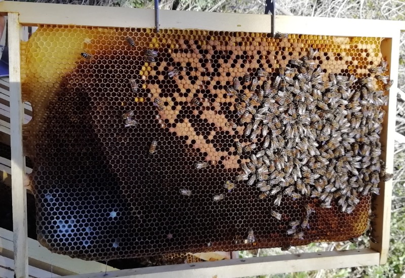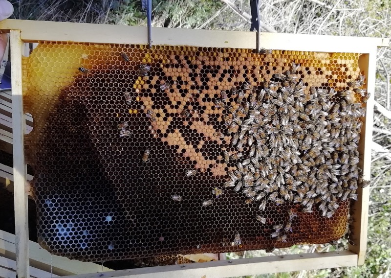 Il y a peu d'abeilles et quasi rien en provision accessible à la colonie.