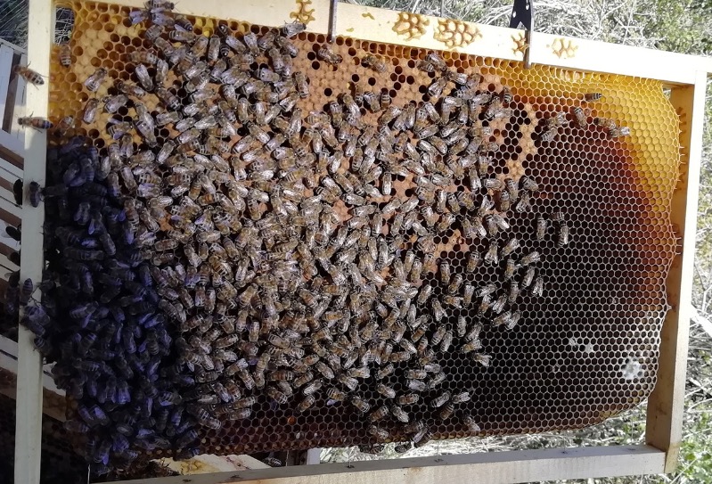 C'est exact que la ruche n'est pas très populeuse mais c'est une reine de l'année dernière, j'espère qu'elle va s'étoffer ce printemps...
