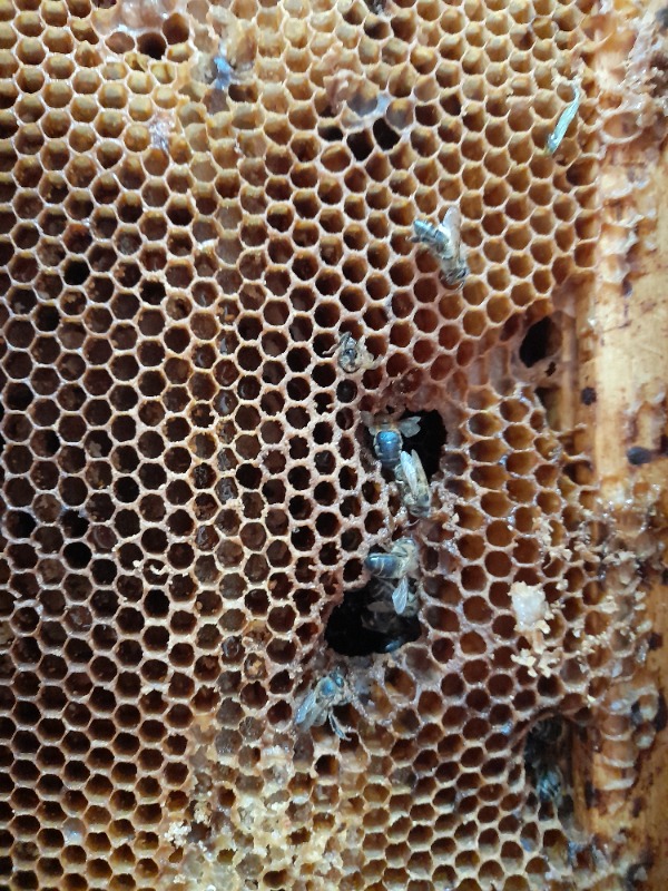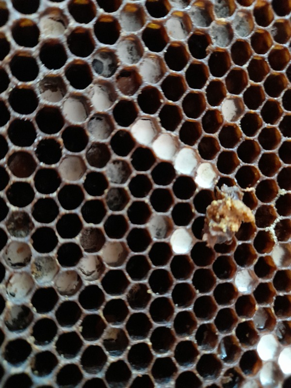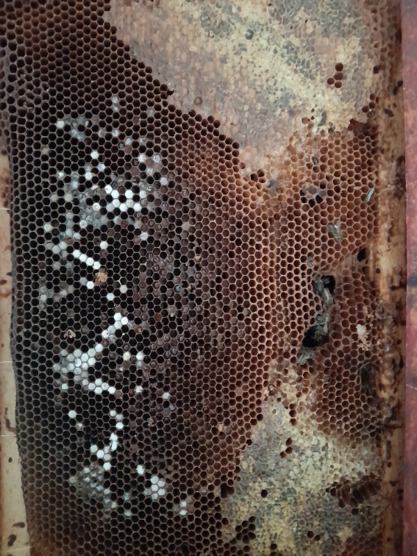 Ces photos ne permettent pas d'avoir une idée des causes de la fin de cette colonies. Je ne distingue que des rayons vides d'abeilles sans couvain même mort. Les alvéoles remplies de matière blanchâtre le sont par du pollen qui a moisi avec le temps et l'humidité ambiante dans une ruche dépourvue d'abeilles depuis plusieurs semaines. Quand une colonie meurt d'une maladie du couvain (loques) ou de la varoise même en hiver il reste du couvain mort (en général). J'exclurai donc ces deux hypothèses. On ne vois pas du couvain de mâles non plus ce qui veut dire que la colonie n'aurait pas eu le temps de devenir bourdonneuse. Cela pourrait être une colonie atteinte d'une pathologie virale qui se serait épuisée avec le temps et la population s'érodant jusqu'à l'extinction totale. Certains traitements hivernaux de la varoise peuvent être fatal à une colonie déjà fortement mal en point en accélérant une fin inéluctable. Est que cette colonie était d'allure normale à la mise en hivernage ?