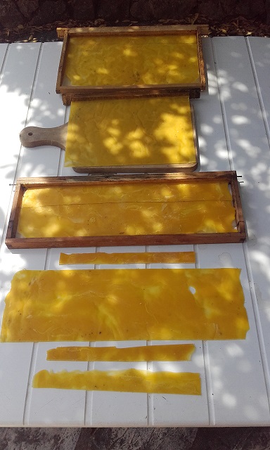 Je n'utilise que ma cire de ruches non traitées chimiquement, fondue par cérificateur solaire.