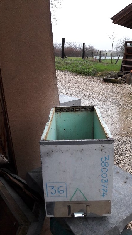une entrée métal INOX (Quarti) (très peu en possède) un toit tôlé galva 105 mm de haut pour ruchette 6 cadres.