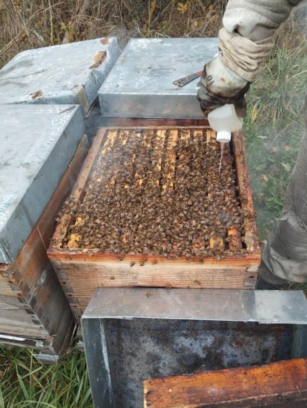 Traitement varroa par égouttement d'acide oxalique effectué mi-décembre.
