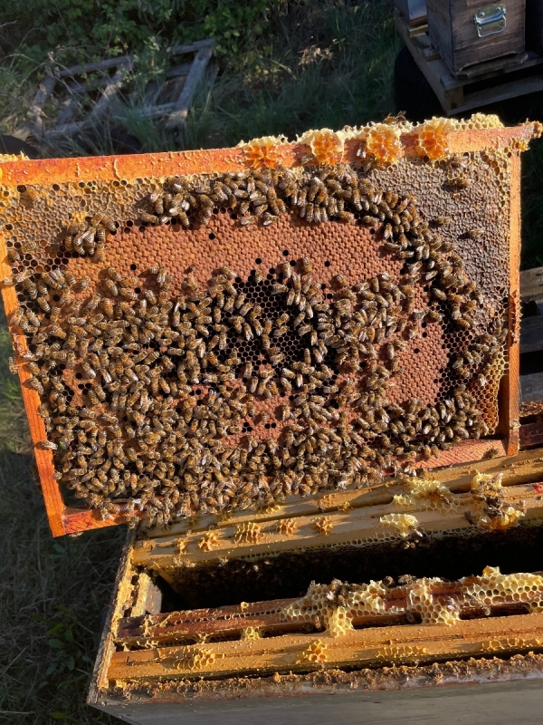 Essaims hivernés sur 6 cadres Dadant issus de nos élevages, 3 couvain minimum. Reines 2025. Possibilité de les enrucher dans la Loire ou dans le Gard.