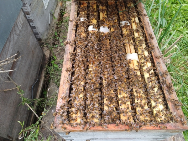 - Ruches peuplées Dadant 10 cadres bois, nourrisseur bois, toit tôle, plancher Nicotplast, support Nicotplast avec semelles, reines Buckfast 2024 et 2025 :