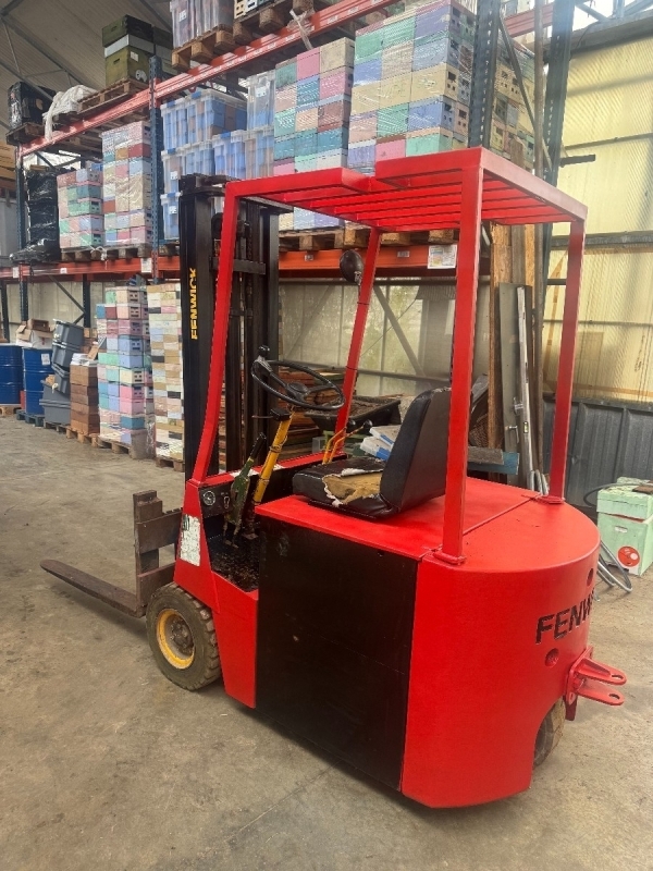 Je vends un chariot élévateur Fenwick électrique de 1982, robuste et parfaitement adapté pour entrepôt, atelier ou stockage.