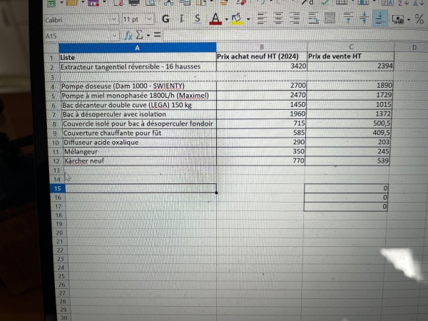 Pour cessation d’activité je vends mon matériel de miellerie acheté neuf en 2024.