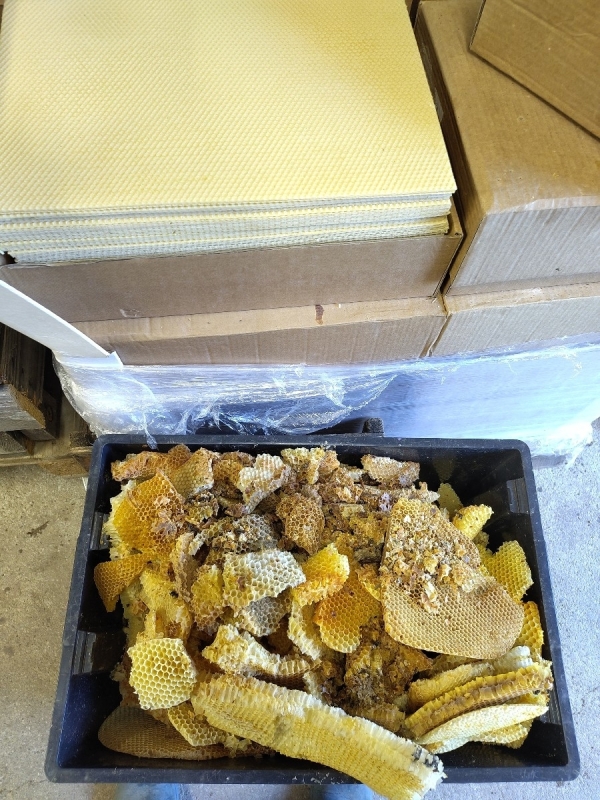 Cire issue de la fonte de bâtisses libres, grattage, fonte Kieler sans traitement, grille à reines... très propre mais pas de cire d'opercules. 13 € HT / kg en carton de 7 kg.