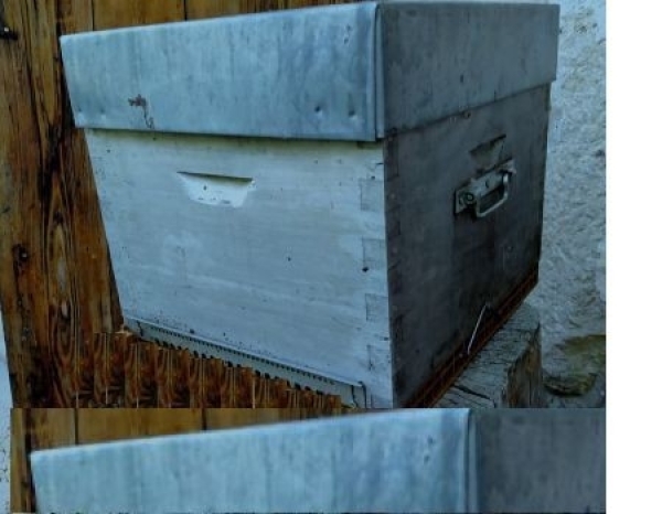 Ruches Langstroth 10 cadres, simple corps, complètes : nourrisseur (bois), plancher (bois aéré, grille à reine. toit tôle.